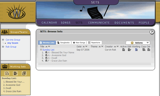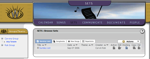 This control becomes very helpful once you have multiple sets in your history and are browsing through your archives looking for songs you have used in the past, and in what situations and sets you have used them. You will note that songs in this setting also have "Add to set icons" themselves. This might seem superfluous, unless you are a seasoned worship leader, who remembers the number of times you have browsed old set lists looking for a specific song that you used. In that case, you can simply browse your old sets, find the song you used, and click the "Add song to Set" icon to add the song from your old set, to your new set. In any case, this is all getting too detailed for our casual tutorial. What we need to do now is take a quick look at how you can go to the "practice pad" where you can hear and see your set list. Click here to continue this tutorial.
