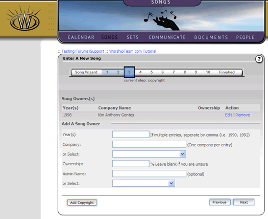 To add the copyright entry, once you fill out the form, click "Add Copyright". Once you do this, you will see your copyright owner is added to the list of song owners in the manner seen below. You can add as many copyright owners as is necessary in this manner.