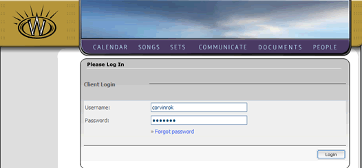 If you have logged in before to your user account, your starting location in Worshipteam.com will be the "dashboard", which looks as follows: