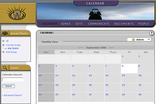 Something special you will note is that the left margin group/team context box contains an added tree control labeled "All". This is not a new group. Rather, it is the ability for a single user to see into all the groups they may be a part of. Any single user may be involved in multiple churches or ministries (though not common), and the ability to view all of their calendars in a consolidated view is important for planning. For most people, this will not be a feature they will utilize, but it is good to know it is there if needed.